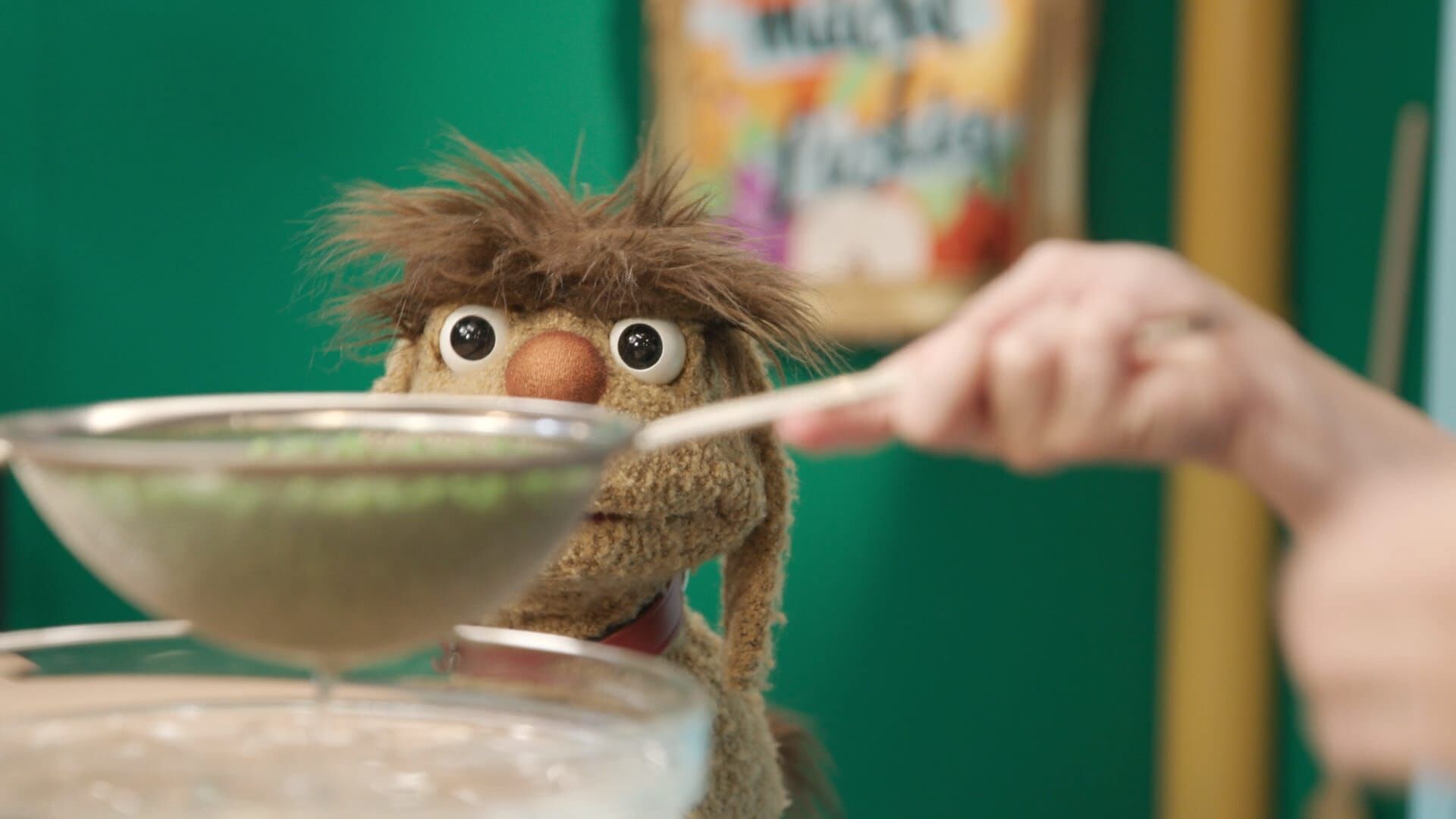 Moppi verschlingt im Dunkeln ein köstliches Gericht. Als das Licht wieder angeht, ist er entsetzt: Er hat etwas Grünes gegessen! Dank Maya lernt er, dass auch Grünes gut schmecken kann.