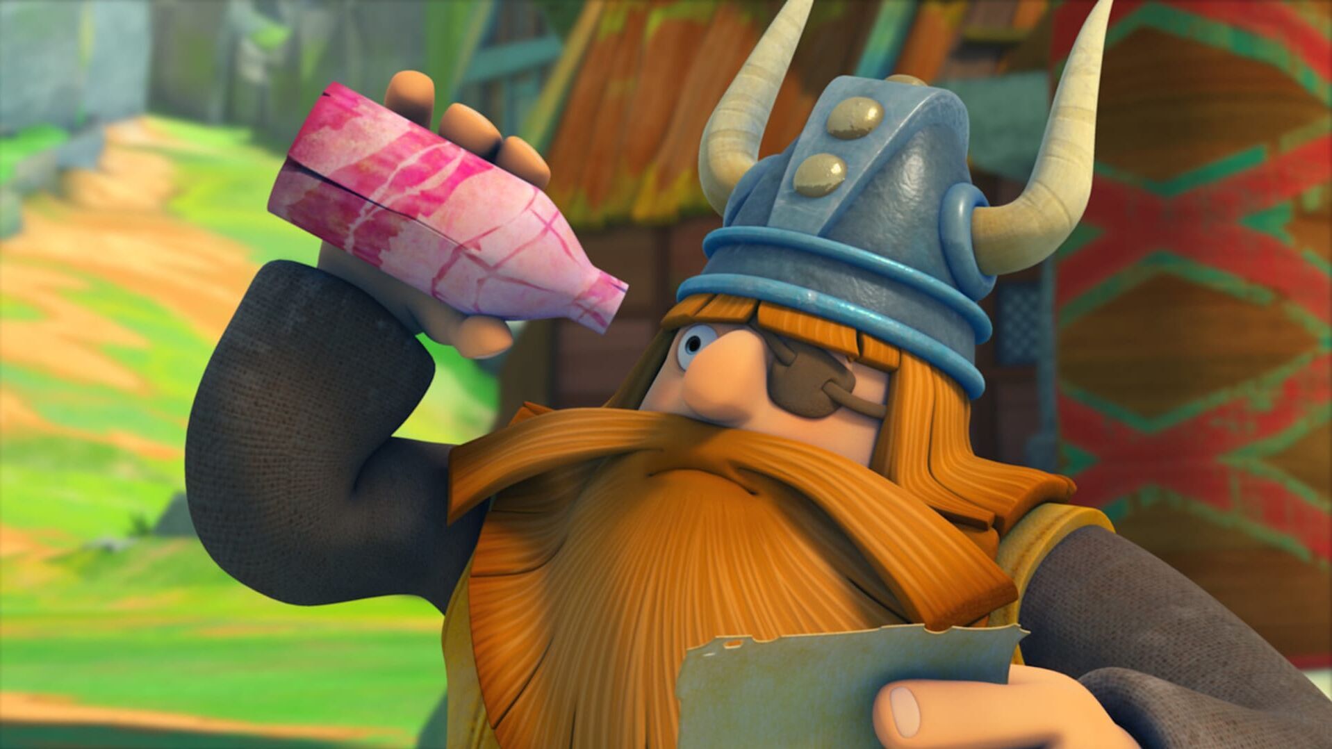 Auf dem Holzweg: Als anständige Kerle wollen die Wikinger ein Mädchen retten, das per Flaschenpost um Hilfe bittet. Sie wissen nicht, dass der schreckliche Sven sie damit in eine böse Falle lockt. Halvar glaubt, er habe das Geschäft seines Lebens gemacht und für ein einziges Fass Honigwein das allerfeinste Rosenholz eingetauscht. Doch zum Abladen der vermeintlich hochwertigen Ladung kommt er nicht. Denn Meereswellen gespickt mit Flaschenpost rollen in Flake ans Ufer. Die Flaschenpost enthält den nachdrücklichen Hilferuf eines verzweifelten Fräuleins. Da die Flaschen allesamt aus dem Holz des Vogelkirschbaums gemacht sind, ist klar, wo dieses verzweifelte Mädchen sitzt: auf der Insel der Vogelkirschbäume! Zwar haben die Wikinger wenig Lust, sich den Tag mit einer hastigen Rettungsaktion zu verderben, doch Ylva belehrt sie eines Besseren: die Drachenboot-Besatzung hat auszurücken und sich – als anständige Wikinger – augenblicklich um das Schicksal dieses wildfremden, aber hilfsbedürf-tigen Menschen zu kümmern. Wildfremd? Na ja, so fremd denn auch wieder nicht! Denn schnell stellt sich heraus, dass unsere Helden mitten hinein in eine Falle des schrecklichen Sven segeln, den man nur besiegt, wenn man Wickie heißt und sich des angeblich aller-feinsten, in Wirklichkeit aber wurmstichigen Rosenholzes bedienen kann. Halvars Prüfung: Unversehens geraten die Wikinger in die Hände einer Königin, die mit seefahrenden Kerlen nur die allerschlechtesten Erfahrungen gemacht hat. Um ihr zu entkommen, muss Halvar ein paar tüchtige Prüfungen bestehen. Wie bitte? Halvar soll sich daheim um den Abwasch kümmern? Und dann auch noch tatenlos zusehen, wie Wickie unter der Fuchtel von Mama Ylva steht und sich mit weibischem Stricken beschäftigt? Auf gar keinen Fall! Was ein echter Wikinger ist, der braucht die hohe See – und genau dahin zieht es eilig den Wikingerchef samt seiner ganzen Drachenboot-Crew. Auf geht's zu entfernten Inseln, auf denen angeblich die Pflastersteine aus Gold sind und ein jeder – mir nichts, dir nichts – ein reicher Mann wird. Doch diese Art Wunderdinge haben sich rasch ausgeträumt, als das Drachenboot mit großem Getöse in ein Felsenriff rauscht und dabei eine Handvoll einheimischer Frauen aufschreckt. Gorm hält sie zunächst für Meerjungfrauen, doch weit gefehlt: sie sind die Herrinnen der Insel! Unter Führung von Königin Rhiannon herrschen hier die Amazonen über die Männer, und ausgerechnet auf Halvar sind sie alles andere als gut zu sprechen. War er nicht derjenige, der die Insel im Juli ausgeplündert hat? Unser Wikingerchef wird sich von diesem Verdacht nur befreien dürfen, wenn er sich einer heiklen Prüfung unterzieht und gegen Wind, Feuer und Erde besteht. Ohne Wickie hat er da wohl keinerlei Chance!