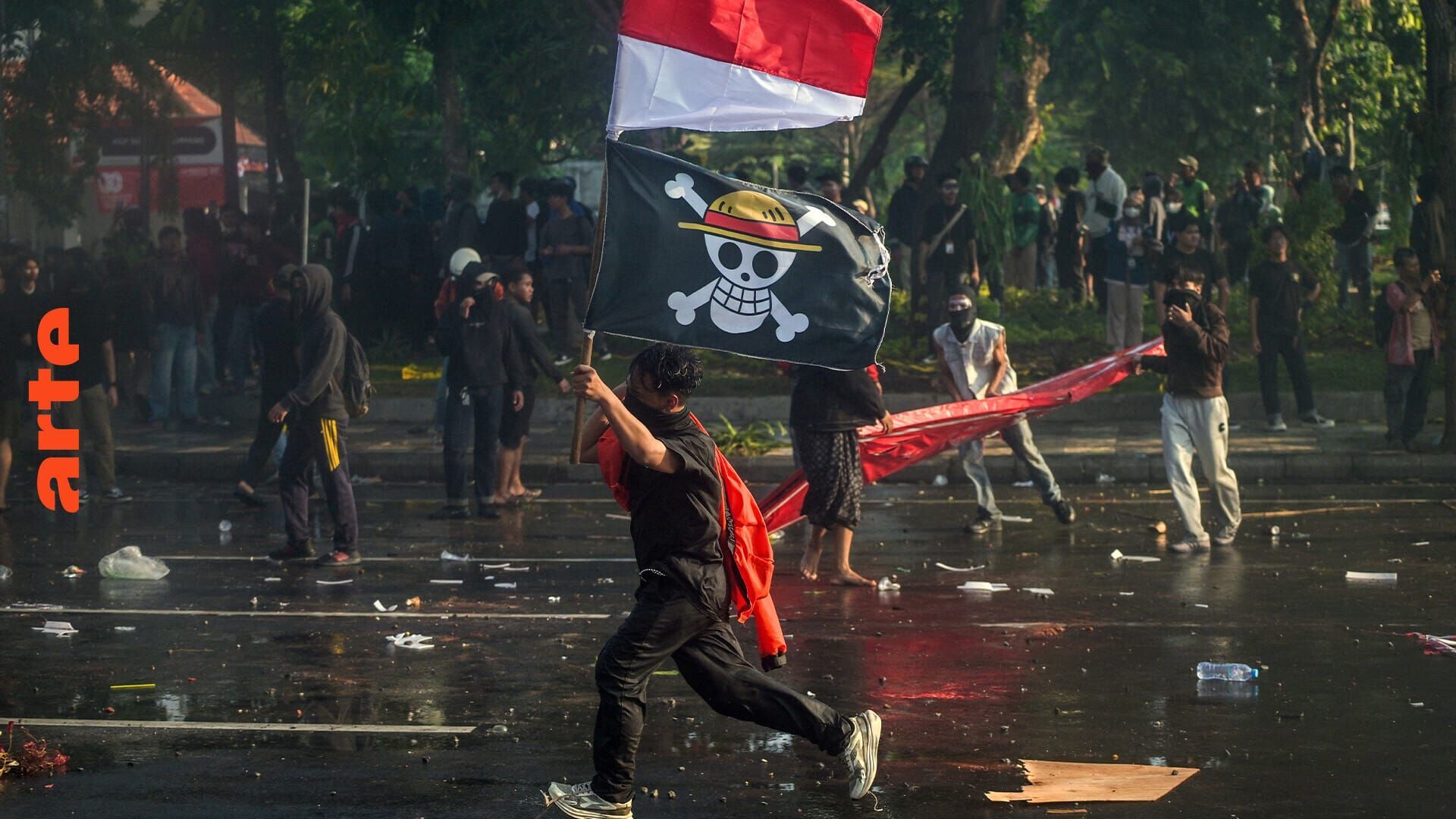 In einer demonstrierenden Menschenmenge in Indonesien schwenkt ein junger Mann die Piratenflagge aus dem Manga "One Piece". Das am 29. August 2025 entstandene Foto dokumentiert den neuen Status dieses Popkultur-Symbols, das binnen kurzer Zeit zum Freiheitsbanner der Generation Z geworden ist. Wirya Adiwena, stellvertretender Direktor von Amnesty International Indonesien, beleuchtet die Gründe für den Erfolg der Fahne. Der Soziologe Vincenzo Cicchelli entschlüsselt die Generation Z, die sich über globalisierte kulturelle Codes definiert und ihrem Protest weltweit Gehör verschafft.